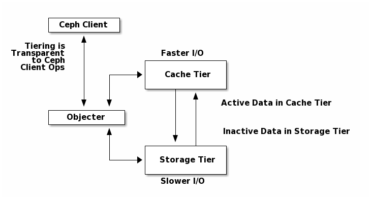 Ceph objecter处理放置对象的位置,而分层代理确定何时将对象从缓存刷新到后备存储层。因此,缓存层和后备存储层对Ceph客户端是完全透明的
