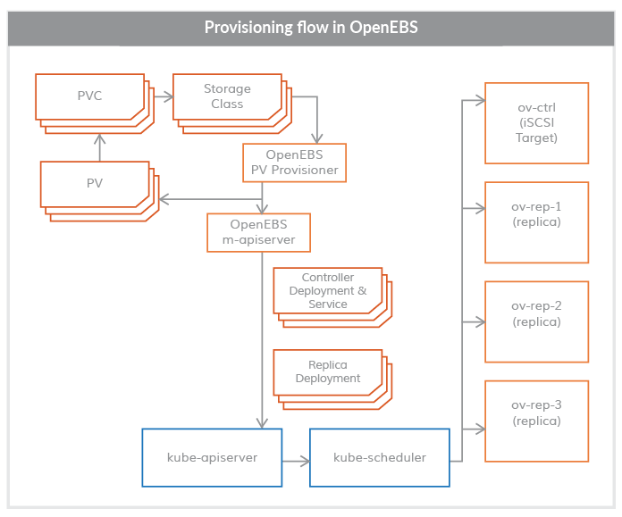 通过OpenEBS提供的卷总是被容器化。每个卷都有一个专用的存储控制器,用于提高有状态应用程序的持久性存储操作的敏捷性和粒度。